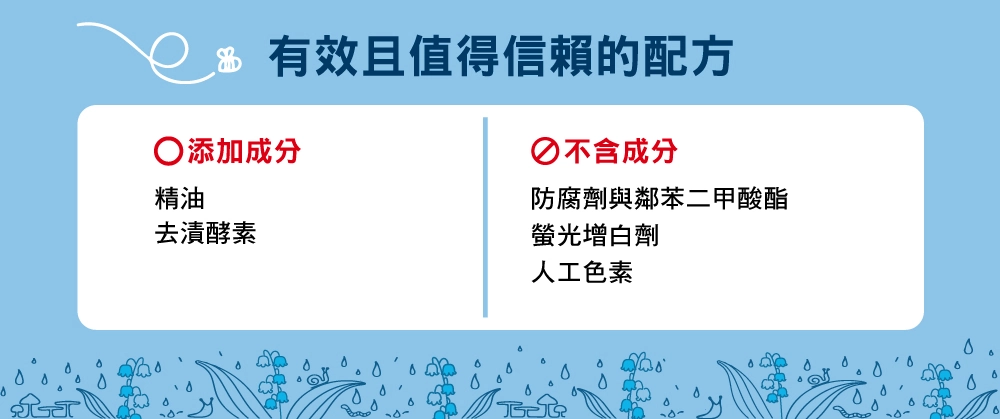 有效清潔同時溫和護衣 猶如身處花園般的香氛