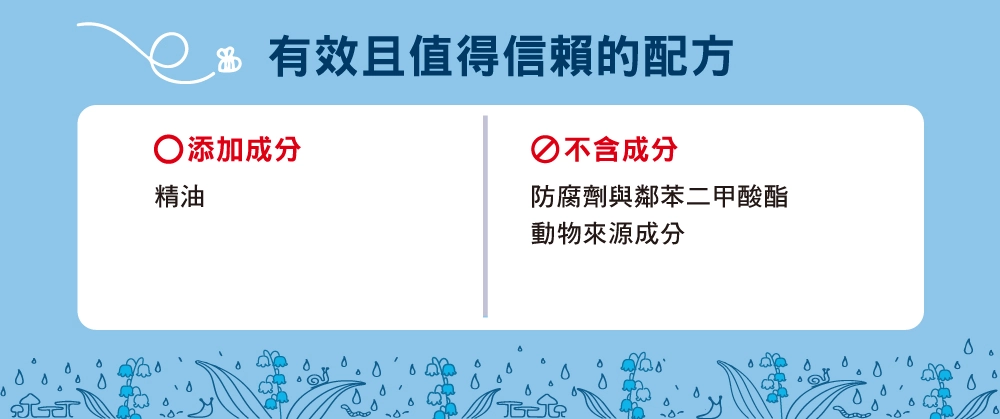 由 USDA 生質配方與可再生回收瓶身設計。通過 Leaping Bunny 國際認證,零殘忍配方,不做動物性實驗,且不含 Parabens 類防腐劑,Phthalates 鄰苯二甲酸酯及動物來源成分。
