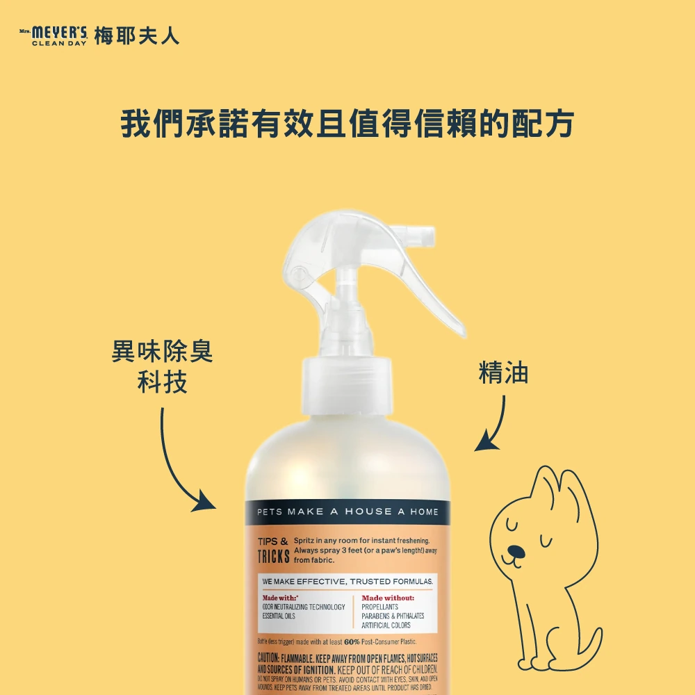 一款專為寵物設計的除味噴霧,能立即清新空氣與難以清洗織物的香氛。適用於難清洗布料,例如 : 地毯、地墊、沙發布料、寢具與衣物。