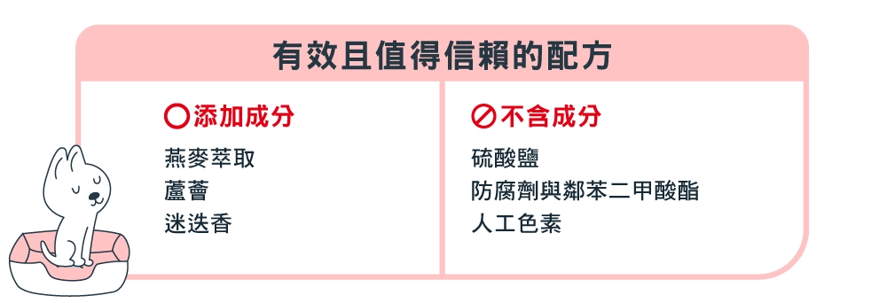 我們全新的貓用除臭護毛噴霧是一款方便、免沖洗的噴霧。專為貓咪設計的溫和配方,只需幾下噴灑即可滋養毛髮並增添光澤。輕柔、細緻,而且噴起來安靜的噴霧設計,讓使用過程簡單不費力,即使是膽小的貓咪也不會被聲音或觸感嚇到。我們有效可靠的寵物護理配方,能從源頭對抗異味與臭味,讓貓咪保持清新、散發潔淨氣息。