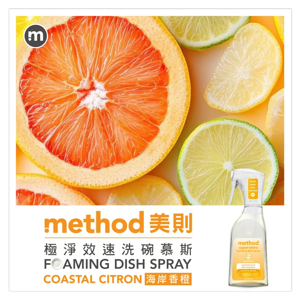 - 英文品名:Method Super Shine Foaming Dish Spray Coastal Citron